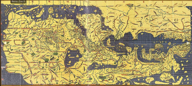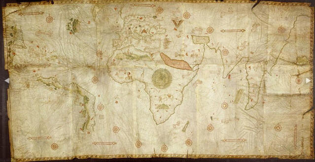 Térkép, amelyet 1528-ban állítottak össze az oszmán admirális és a navigátor Haji Muhiddin Piri ibn Haji Mehmed, aki a feltűnő pontosság Afrika, Dél-Amerika partjait ábrázolja sőt Antarktiszon is. Honnan tudta, hogy néz ki a török admirális? csak egy kontinens, amelyet csak három évszázaddal később fedeztek fel, ismeretlen.