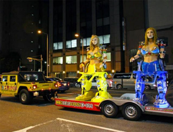 Androidok bikiniben, lábakkal, mintha kölcsönvették volna őket A transzformátorok harcolhatnak egymással Lady Gaga és a küzdelem megtekintéséhez a látogatóknak 50-et kell fektetniük dollárt.