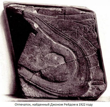 Ezt a nyomtatást 1922-ben találta Nevada-ban John Reid, geológus és egy mérnök. A Természettudományi Múzeum és a Columbia professzora az egyetem munkatársa, amelyben Raid mutatott tárgyat, mindent elmagyarázott természet. “De senki sem kérdőjelezte meg a fosszilis korszakát – hogyan legalább 200 millió évvel, akkor minden szakértő egyhangú volt. az A Rockefeller Intézet mikroszkopikus elemzést végzett a amelynek eredményei a szakértők ítéletet hoztak: lenyomat világosan elhagyott ember alkotta tárgy.