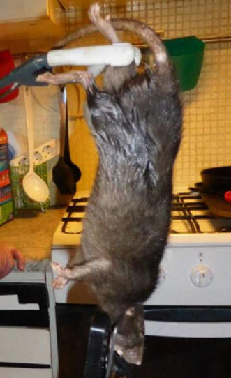Signe és két gyermeke kísérlete a patkány megijesztelésére kudarcot vallott rágcsáló nincs benyomás. Végül is egy hatalmas állat letelepedett és annyira merész lett, hogy rendszeresen kezdett dolgozni sétál a konyhában.