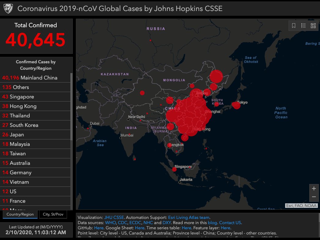 Johns Hopkins ezen online irányítópultja a CDC és a WHO adatait használja a járvány valós idejű nyomon követésére.