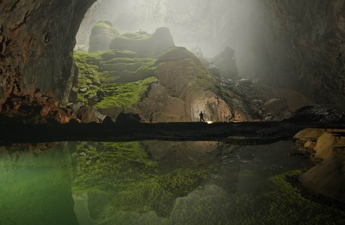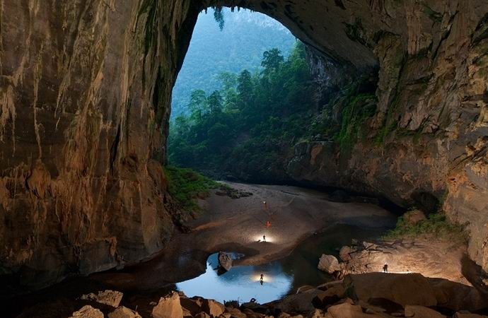 fénykép Nyílt forrásokból a Shondong a legnagyobb barlang a Földön. Ő az található Közép-Vietnamban, nevezetesen a nemzeti parkban Fongnia Kebang, Quangbin tartomány. Egyedi felső üreg a földkéreg több millió év alatt alakult ki a kimosódás folyamatában mészkővizek.