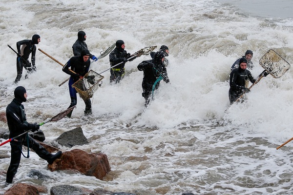 És a hétvégén (2015. január 17–18.) A vihar tört ki A Balti-tenger kalinyingrádi partja nem komikus, de nem az megállította a bátor bányászokat. Sőt, ilyen is adott különös pikquancy az eseményre, és természetesen nem befolyásolta tömeges karakter.