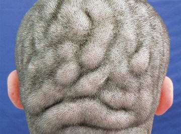 A fej bőre agy alakját váltotta ki: a parietalis és a az okcitalis régióban kialakult durva fájdalmas bőrráncok, az agy gyrusra emlékeztet. A fiatalember azonban nem az aggódva hibája miatt, nem rejti el a fejét kalap alatt. Ő az még büszke a szokatlan koponyájára. Leggyakrabban pachidemia hajtogatott előfordul a férfiakban, és általában röviddel azután pubertás. A betegség okai továbbra is fennállnak ismeretlen. A fej megjelenésének javítása érdekében sorozatot készíthet kozmetikai műtétek. Ez azonban elég drága. eljárást.