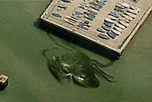 Az előző napon az interneten közzétett fotón, egy hatalmas rákfélék bujkál sekély vízben. A víz alatti lény hossza legalább legalább 15 méter.