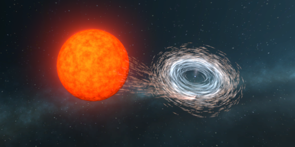 Fehér törpe, amely forog, miközben felszívja az anyagot társa felől. (ARC Kiválósági Központ a gravitációs hullámok felfedezéséhez)