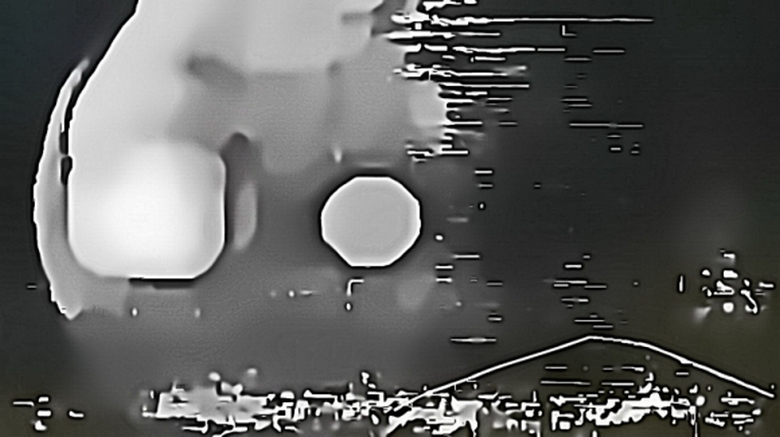 Vessen egy közelebbi pillantást, most nehéz nem észrevesz két UFO-reflektorfényt, szintén elég erős feltehetően alulról látható lámpák, és természetesen hatalmas nyílás. A hajó nyilvánvalóan lekerekített – nevezetesen annyi kutató írja le akkoriban UFO.