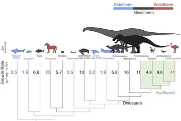 A dinoszauruszok nem voltak hidegvérűek, mint modern hüllők és nem melegvérűek, mint emlősök és madarak. alatt 135 millió évvel a vér uralta a bolygót, amely nem volt hideg és nem forró, és közbenső típus volt időnk rendkívül ritka. Modern hüllők, például gyíkok, kígyók és teknősök, hidegvérűek, vagy ektotermikus, azaz testhőmérséklete a hőmérséklettől függ a környezet. A madarak és emlősök ezzel szemben melegvérű, vagyis ellenőrzik testük hőmérsékletét, állandóan tartva. Ember esetében kb. 37 Celsius fok (98,6 fok). dinoszauruszok hüllők, és a tudósok évek óta hitték ezt hidegvérű lények, lassú anyagcserével, az élőhely hőmérsékletétől függően. Néhány azonban a modern madarak őseivé váló dinoszauruszok ezt repülhetik az a priori azt jelenti, hogy felgyorsult anyagcserére és állandóan magas testhőmérséklet. Ennek a rejtvénynek a megoldására a természet, a kutatók új elemzési módszert fejlesztettek ki anyagcsere kihalt állatokban. A szabványt vették alapul módszer a létfontosságú tevékenység ingadozásainak meghatározására a az éves szeletek vizsgálata. Mint a fák, a minőség és a mennyiség élettartama, amelyet meg lehet határozni a csomagtartón lévő gyűrűkkel, az állatok hasonló rétegekkel (gyűrűkkel) vannak a csontokon. az A metabolikus változások szintjének meghatározásával, tudósok megpróbálta meghatározni nemcsak a megélt évek számát, hanem azoké is az állatok minősége, valamint egyéb jellemzői, például egy készlet súly, testhőmérséklet és hasonlók. Kutatásra kerültek a modern hüllők, emlősök és madarak, valamint szövetminták kihalt állatok, beleértve a dinoszauruszok több faját. az A tanulmány eredménye a következő mintát derítette fel: súlygyarapodás, egyébként – az állat növekedése, a melegvérű állatvilág tízszer magasabb volt, mint a növekedés hidegvérű állatok. Az anyagcserével kapcsolatos helyzet hasonló: az melegvérű étel asszimilációs képessége tízszer nagyobb. viszont ugyanez a tanulmány megállapította, hogy a dinoszaurusz kövületek gyorsabban növekedtek, mint hidegvérű kortársaik – hüllők, de lassabbak, mint melegvérű állatok. Ez a minta arra a következtetésre jutott, hogy A dinoszauruszok vérkeringésének típusát mezotermikusnak lehet jellemezni – azaz az ektotermikus (hideg) és az endotermikus közötti medián (Meleg). Az ilyen típusú vérkeringésű állatok generálhatnak elég hő ahhoz, hogy támogassa a környezetet a környezet, a testhőmérséklet azonban nem képes ezt állandóan megtenni. az a modern faunában az ilyen cápák ilyen állatoknak tulajdoníthatók, tonhal, a bőrös tengeri teknősök több faja, és – petefészkes echidna. Például a tonhal testhőmérséklete mindig magasabb a víz hőmérséklete azonban, ha a halak hidegebbek mély víz, testhőmérséklete arányos a víz hőmérsékletével szintén csökken. A mezotermák tartósító eszközökkel rendelkeznek Hő, de nem égetik el a tárolt zsírt, és nem reszketnek tartsa melegen. Rólunk eltérően, hogy ne fagyjon be, nem emelik fel az anyagcserének sebessége. Szerep a hő fenntartásában a testméret is játszik – itt a dinoszauruszok kedvezően különböztek egymástól modern állatok.