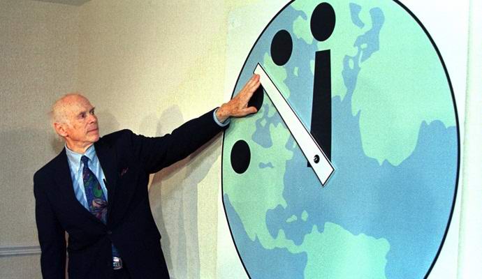 1953-ban az Egyesült Államok és a Szovjetunió tesztelték a nukleáris bombákat és az órákat A Doomsday 23:58 kezdett megjelenni. Ez a legközelebb ehhez pillanatnyilag az óra kezeinek pozíciója éjfélig – az ítélet napjáig.