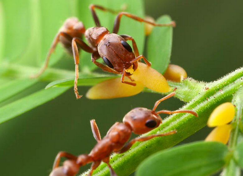 Nyilvánvaló okokból nehéz a fák számára magukat megóvni, természetük bizonyos jogorvoslati lehetőségeket nyújtott. Fák vannak akik “teljes botrányt” bocsátanak ki a rovarok testvéreikbe. K például Afrika és Dél-Amerika esőerdőiben nő akác típus, amely a hangyák életéhez optimális feltételeket biztosít: a csomagtartó mentén növekvő erős tüskék tökéletes menedéket jelentenek a számára és a növény által termelt speciális nektár tápláló keverék. A hangyák a maga részéről féltékenyen őrzik a növényt, más rovarok és akár növényevők megtámadása.
