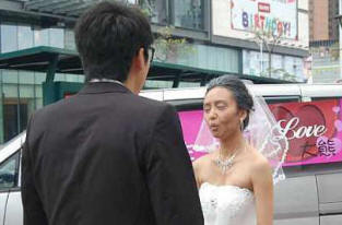 fénykép nyílt forrásokból “Egy nő szépsége nő vele az évek során ”- állította az Oscar-díjas szépség, Audrey Hepburn. azonban amint egy nemrégiben bekövetkezett esemény bebizonyította, nem minden ember ért egyet ezzel azt. A Shanghaiist szerint a város lakosai múlt hétfőn A Kínai Shenzhenben heves vita volt a következõ között egy fiatal férfi és egy idős nő, egy esküvői ruha. Hamarosan egyértelművé vált a járókelők számára egy idős hölgy és egy fiatal 20 éves lány, akik sminkkel és 50 évig „öregített” fejpántok. Fiatal kínai nő rendezett egy show 70 éves nővé válásáért vajon a vőlegény hűséges lesz-e vele, amikor öregszik.