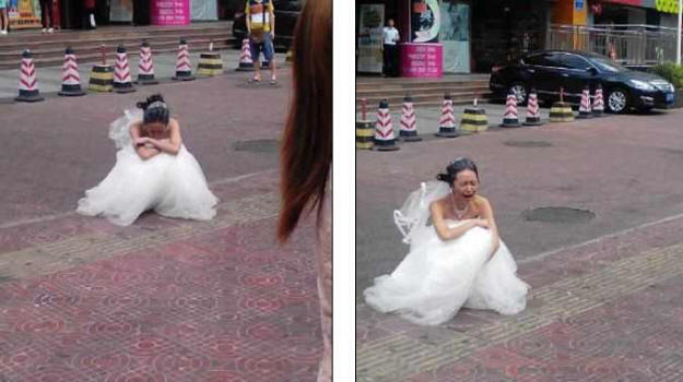 Fotó nyílt forrásokból egy zokogó kínai nő mondta mások szerint a barátja „hátborzongató nőstény”, és nagyon sok volt lányok. ” Amikor az újságírók időben megérkeztek, megkérdezte a menyasszonyot miért továbbra is feleségül akar venni egy asszonyot, felelte: „Mert nagyon bánik velem. ” Az eset után képviselõk A helyi média megtudta két férfi járókelő véleményét mi történt.