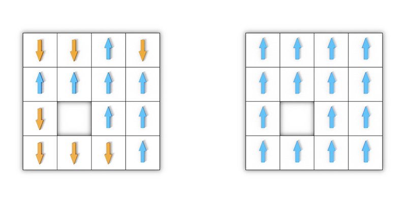 A puzzle Nagaoki változatában az összes elektron azonos irányba áll, ami azt jelenti, hogy hiába keverednek a puzzle darabkái, a rendszer egészének mágnessége állandó marad.