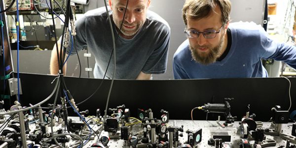Mikkel Andersen (balra) és Marvin Weiland a fizikai laboratóriumban.