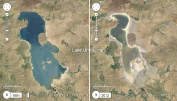 Időközben az iráni Urmia-tó, amely egyszer szerepel a számban A Föld legnagyobb sós tavai az utóbbi időben 80% -kal csökkentek tíz év. Ennek oka az éghajlatváltozással együtt a következő – az öntözőrendszerek bővítése mezőgazdasági üzemekben és – a folyók gátjainak számának növekedése, amelyek ezekhez vizet szolgáltatnak rendszereket.
