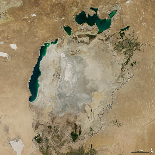 Néhány nappal ezelőtt a NASA lenyűgöző műholdat mutatott be képek az Aral-tengertől Közép-Ázsiában. Egyszer az Arali tenger volt a bolygó negyedik legnagyobb tója a múltban 50 évvel a tó szinte teljesen kiszáradt, többek között a következők miatt: a szovjet hatóságok rövid távú agrárpolitikája hatékony sivatagi gazdaságok létrehozása.