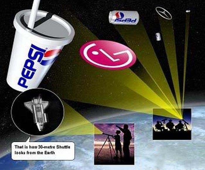 1993-ban, számunkra a híres amerikai Space cég A Marketing Inc úgy döntött, hogy létrehoz egy űrtartalmú hirdetőtáblát négyzetkilométer. Megjelent egy ilyen formátumú hirdetőtábla A föld alacsony pályája, minden földi földlakó számára látható lesz.
