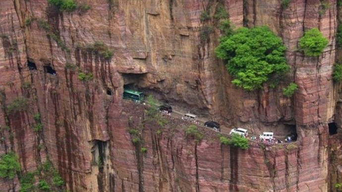 A Mount Guo Liang Song útja 1250 kilométer hosszú, szélessége tizenhat méter (mintha ott lenne nyújtani) autók, de a forgalmi dugók itt és gyakran fordulnak elő) harmincöt úgynevezett ablak van, amelyeken keresztül ez történik egyfajta alagutat megvilágít a természetes fény.