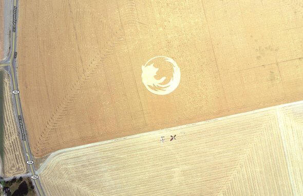 Óriási kör a mezőn Firefox logó formájában Oregon
