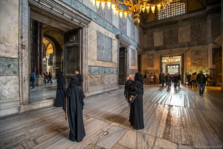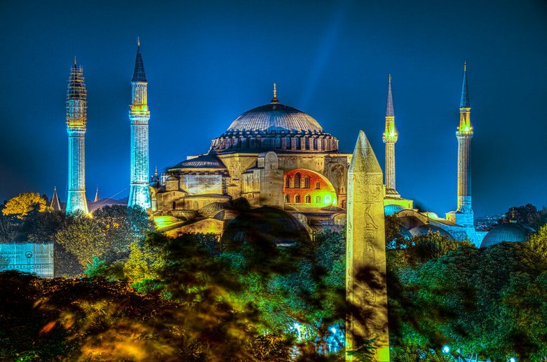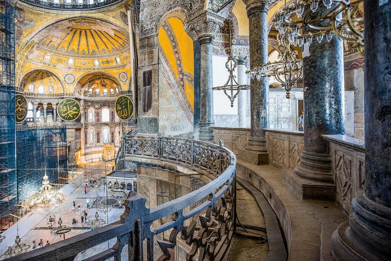 Jelenleg egy múzeum vegyes stílusú iszlám és Kereszténység az építészetben, falfestés, vallásos szimbolizmus, mivel a világ legnagyobb ortodox egyháza közepén van A 13. századot a törökök foglalták el, és a Hagia Sophia mecsetté alakultak kiegészítés ahhoz, hogy minaretek és más muzulmán épületek, valamint egyedi freskók vakolat bevonattal a falakon.