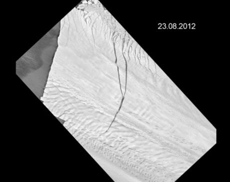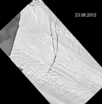 fénykép nyílt forrásokból a Pine Island jégpolcon az egyig újat adtak a repedéshez. Egy hatalmas jéghegy kész elszakadni Antarktiszon. Repedés, amely a jégpolcon kialakult A Pine Island gyorsan növekszik. Most a hossza körülbelül 30 km, szélessége eléri a 243 m-t, a mélysége pedig egyes helyeken – 55 méter. FOTÓ: A NASA nemrégiben egy német műholdat használ A Pine Island felszínén lévő TerraSAR-X új hibát fedezett fel. A gleccser viselkedését szorosan ellenőrző NASA szakértők, állítják, hogy ez egy normális folyamat, de erre szükség van irányítani. Az ABCNews szerint, amikor a jég eltört, a keletkező jéghegy egy New York-i méretű lesz. fotók, amelyet a NASA kutató repülőgép készített 2011 novemberében és az idén februárban megjelent, megmutatják, milyen gyorsan növekszik feltörni. Akkor hossza 28 kilométer volt. Pine Island van óriási gleccser, teljes hossza kb. 50 km, nyúlik vissza A Hudson-hegység lábánál az Amundsen-tengerig – emlékeztet a Daily Mail. Ő az a Nyugat-Antarktisz jéglapjának része, ahonnan 2001-ben egy meglehetősen nagy jéghegy már elválasztott. A bukás előtt tavaly egy NASA repülőgép repült a jégpolcon át, senki sem bizonyítékok voltak arra, hogy ez felbomlani kezd. Fenyő-sziget instabilitással vonzza a tudósokat értéket. Ez a legnagyobb bizonytalanság forrása a tengerszint emelkedése.