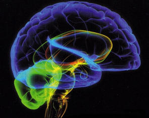 Normál agyi tomográfia, kisagy piros színben