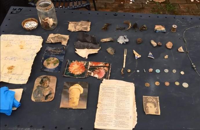 A kutatók által talált tárgyak is tartalmazzák fali lámpa, régi aljzatok, izzó, gombok, nagy egy lemez címerrel, egy apró kalapáccsal és még sok más dolgokkal amely úgy tűnik, csak az eltemetett közös környéke konténerek. Sokuk haszontalan, és még inkább hasonlít szemetet, de néhány elem, például ugyanaz a régi érme, bizonyos értékű lehet a kincsvadászok számára.