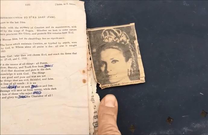 Volt ott madártoll, hosszú gyöngy, gomb, golyó, a Bibliából szakadt lapok, a régi folyóiratokból készült kivágások és fotók az egykor népszerű amerikai színésznőből, Grace Kelly-ből, 1956-ban feleségül vette a monacói herceget. A bankban is több jegyzet volt Philip névvel. Talán ez a név a gyorsítótár előző tulajdonosa.