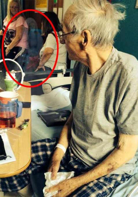 Az unokája nyomon követte a helyi vikárt, és nagyapja ágyába vitte, kérdezte, hogy imádkozzon a beteg gyógyulása után, miután úgy döntött készítse el az “utolsó” fényképet a telefonján. Viszont hazatérve egy héttel később, és megvizsgálta a képet, megpillantott egy szellemet – egy nő alakját a háttérben, amelynek fejét kendő vagy fátyol borítja.