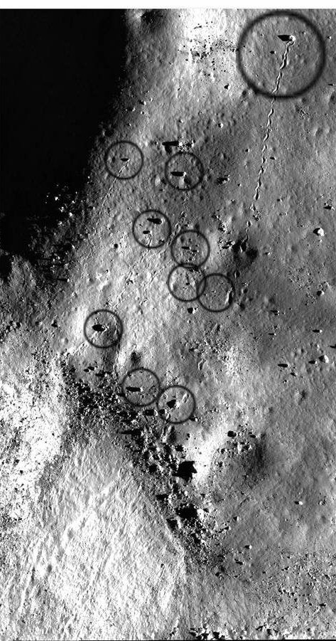 A Holdon nincs légkör, milyen nyomok lehetnek itt ?! Ki az elmehet? Ezért a fentiek alapján javasolták “mikrometeoritok” és “holdrengések” változata. Nyomak tanulmányozása „Természetes lábnyom” szempontjai, mint például az ismételhetőség ujjlenyomatok vagy az elülső láb hátterétől való különbség jelei, nem végezték. Minden figyelmet csak a következőkre összpontosítottak “természetes” verzió.