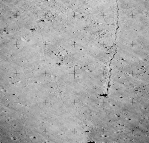 Hely kiválasztása az Apollo holdi pályájához A “Moon Orbiter” sorozatú készülékek sok világos képet készítettek a leendő űrhajós leszállóhelyek. Amelyen, beleértve számos lábnyomot és homályos “járást” készítettek kövek. ”