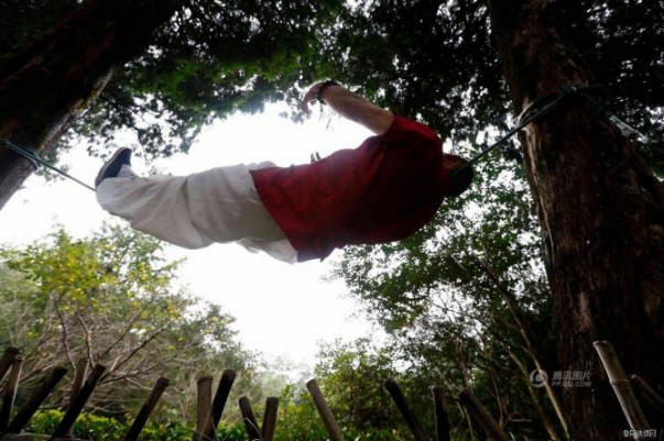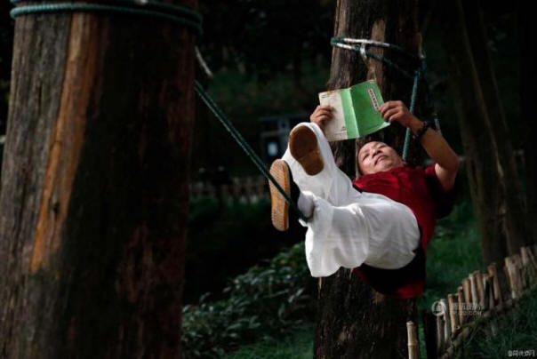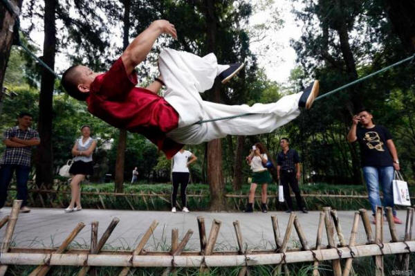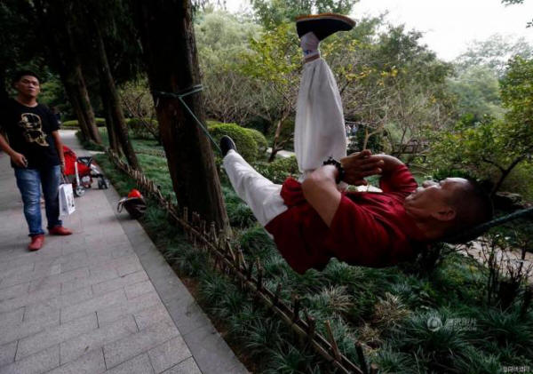 A kínai Zhejiang tartományban, a Hangzhou város parkjában láthatjuk Liang Yang egy 51 éves férfi, aki ugyanazon a kötélen fekszik (Liang Yanguo) „Kung Fu Man” becenevet kaptak. Nyaraló ilyen egy kínai ember annyira magabiztosnak érzi magát, hogy szabad felemeli a karokat, a lábait, sőt még üdvözli a járókelőket, írja az Oddity Central.