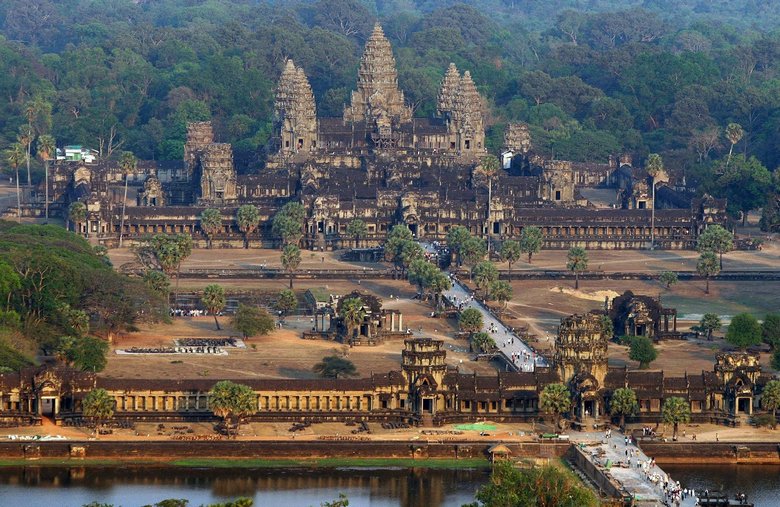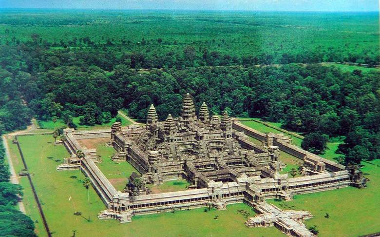 Az óriási Angkor Wat templomkomplexum Kambodzsában található a modern Siem Reap város közelében. A hivatalos változat szerint ő a Khmer uralom idején Vishnu isten tiszteletére épült II. Suryavarman király (a XII. Század első fele). észlelt régészek 1860-ban, ez a templom jelenleg a Az UNESCO világörökség része.