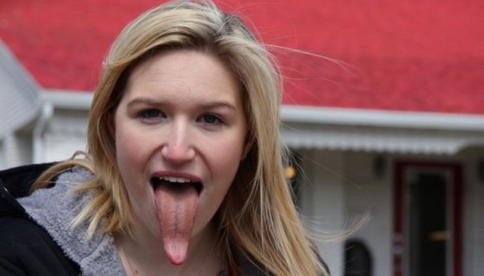 Nyelvének hossza meghaladja a tíz centimétert, ami lehetővé teszi például egy lány esetében könnyű nem csak az orrhoz juttatni őket, ami csak lehetséges bizonyítani a bolygó sok emberének, de a szemnek is állát a könyökig és a test többi részéig.