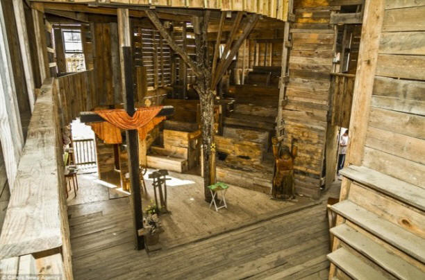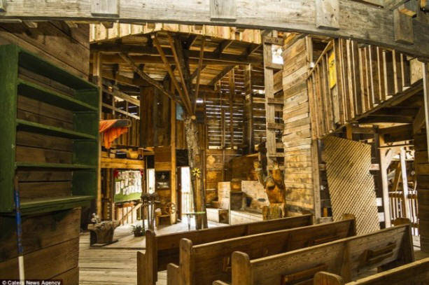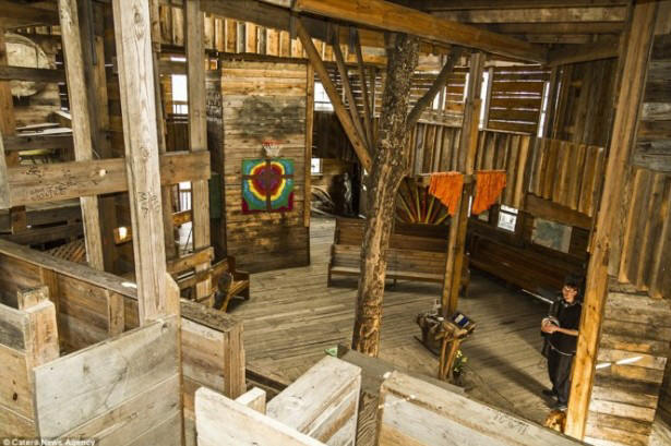 Fotó nyílt forrásból Hatalmas faház kolosszus területe 10 000 négyzetláb (3400 négyzetméter) A Horace nagyon olcsó. Csak 12 ezer dollárt költött köszönöm az anyagok gazdaságos felhasználása és a hulladék felhasználása termelés. A házban spirális lépcsők, oltár, kosárlabda játszótér és sok szoba, folyosók, átjárók és erkélyek.