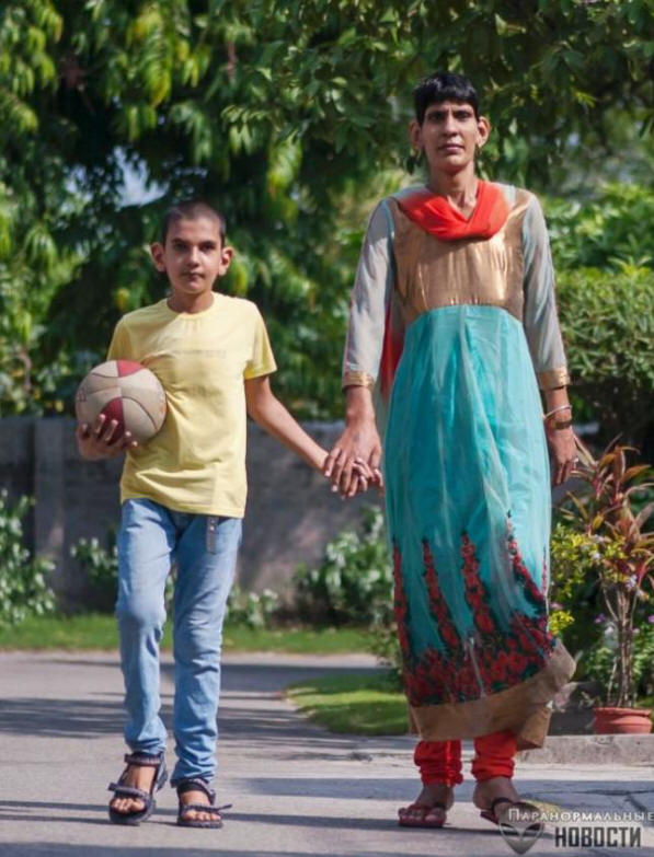A gyermek szokatlan növekedése az anyjától származott. Shvetlana Singh, akinek a magassága 2 méter 20 centiméter a legmagasabb nő Ázsiában. A férje mellett úgy tűnik, hogy a saját férje törpe.
