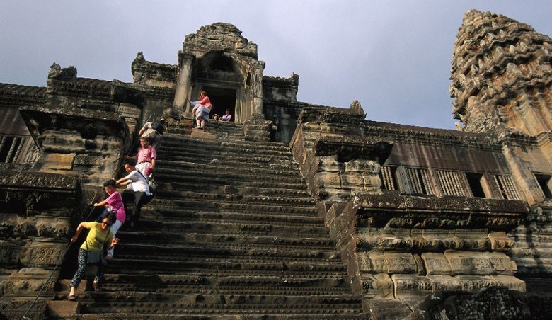 Az Angkor Wat templom komplexumának lépcsője Kambodzsában