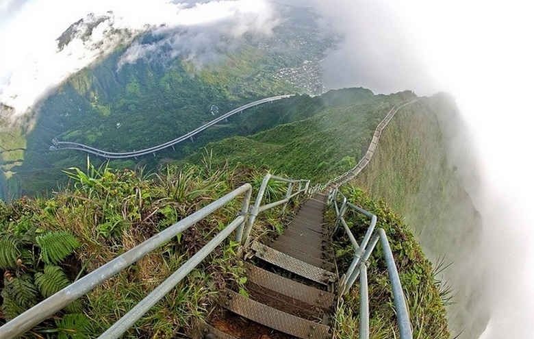 Ez a legveszélyesebb lépcső a világon, mert áll majdnem 4000 fémlépcső, amelyek mindegyike képes az életedbe kerül – minden olyan remegő és alkalmatlan hasznosítás. Ezt a lépcsőt 1942-ben építették fektetésre katonai kommunikáció, azonban régóta elhagyták. Nem csoda amelyek felmásznak a haiku lépcsőn a kulau hawaiian tetejére Oahu-ot már régóta betiltották (1987 óta), erre a célra is a biztonság ki van mutatva, és a jogsértés miatt börtönbe kerülhet. Ez a tény azonban nem állítja meg a kétségbeesett turistákat, akik kora reggel indulnak a csúcsra, miközben az őrök még alszanak, mivel ez nem csak csodálatos kilátás, akkor te is továbbra is a legszörnyűbb hintán lendül fel – jobbra fent Catcher.