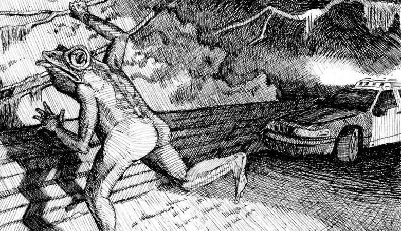 A következő esemény 1972-ben Ray rendőrséggel történt Shockey. A sötétben járőrözõ tiszt vezette elhaladtak egy helyi cipőüzem mellett, és hirtelen észrevettek egy óriást egy béka vagy varangy, mint egy nagy kutya. A lény mászott az autópálya, és a fényszórók elvakultak, és felálltak hátsó lábait, miután oldalra rohant, és berohant a következőbe bozót. Ray követte a lényt, de az egyik nyomot kapott.