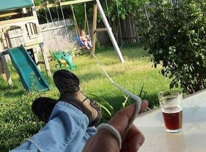 Fotelben ülve, impozánsan sört inni, és ezzel egyidejűleg inni gyerek hinta – gyenge?