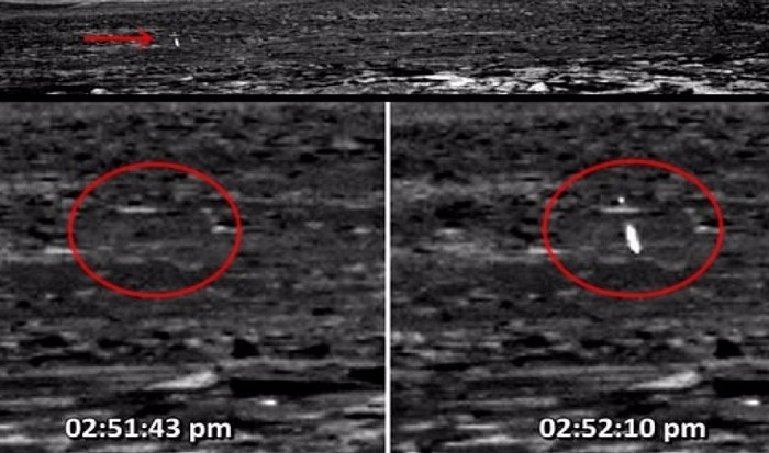Vegye figyelembe, hogy a Mars fényképeiből a virtuális régészek hasonlóak ezeket a aprólékos űrkutatókat hívják, akiket állandóan találnak gyanús tárgyak vagy jelenségek. Például, utoljára Az ufológusok megvizsgálták az egyik képet, amelyet a Curiosity rover küldött egy furcsa fénysugár, amely mintha semmiből jött volna (lásd fotó fent). Az első fényképben azonban nincs semmi gyanús a második, amelyet a rover készített néhány másodperc alatt, megjelenik furcsa világító gömb, mintha lézerrel fényképezne …