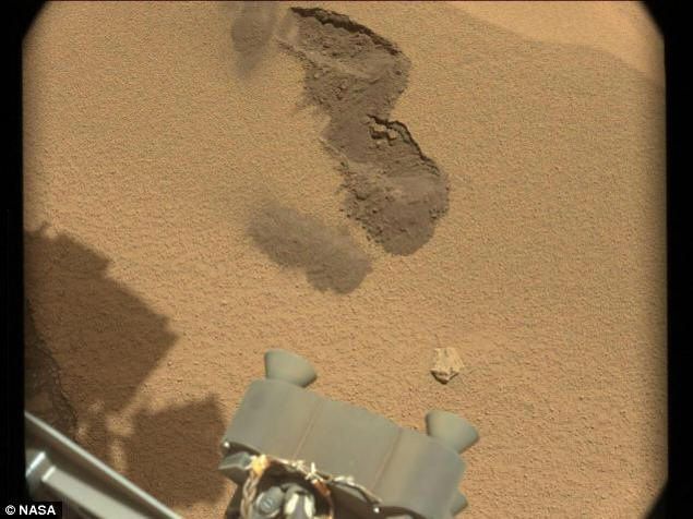 Hadd emlékeztessem önöket, hogy egy „csótány” jelent meg a 61. márciusi napon (Sol 61–7 2012. október a földön). Kíváncsisági robot (Mars Science Laboratory Curiosity) saját kerekein fényképezte abban a pillanatban, amikor egy gombócmal megmártotta a helyi talajt – vett mintát. Néhány napok óta senki sem értette, mi az. A kép tisztázásra került október 11-én készült (Sol 65) egy MAHLI kamerával