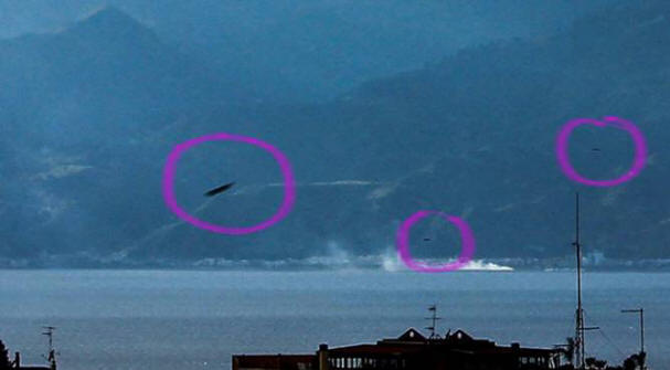 Egy szemtanú különös füstnek is tűnt, amelyen látható kép három UFO-val (fent).