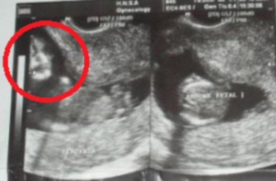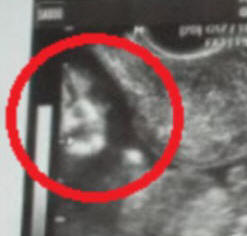 Házastársak Marcelo és Famela de Souza (Marcelo és Phamela de Souza) megdöbbent, amikor ultrahanggal látta születendő gyermekét a késő anya Marcelo arcához hasonló kép.
