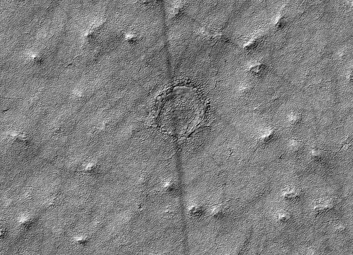 Egy szokatlan fénykép bőrszerű hüllőt ábrázol a táj, ahol a számos domb között kerek kialakulás konvex élekkel. A NASA alkalmazottai meg vannak győződve arról, hogy ez ütés kráter. Meteorkráterek fordulnak elő meglehetősen gyakran a vörös bolygó felszíne, bár itt vagyunk talán mégis valami másról szól.