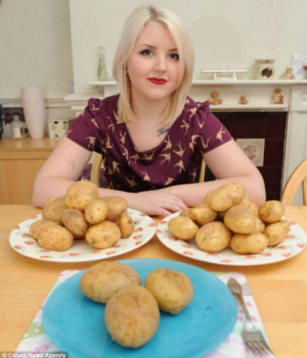 A nő több mint 13.000 kabát burgonyát evett, mert fóbia szinte minden élelmiszeripari termékkel kapcsolatban. A 23 éves Claire Jones pánikrohamoktól szenved arra gondolva bármely más étel.