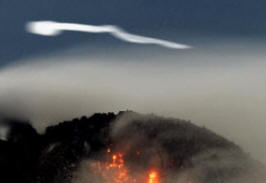 A bloggerek szerint az UFO-k repülnek egy vulkán felett a kitörések nem először – szinte minden héten észreveszik őket. Ugyanakkor az furcsa tárgyak színe fehérről vörösre változik hagyjon lenyűgöző inverziós nyomvonalat. Másrészt elméletekkel, a füstöt egy vulkánból magukba húzzák.