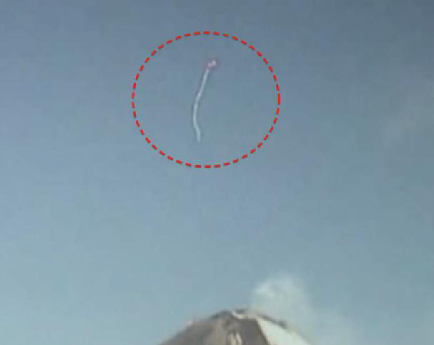 Mexikóváros lakói felfedezték az egyik aktív vulkánt Popocatepetl UFO-alap sperma vagy fehér gömb alakú egy kötéllel.