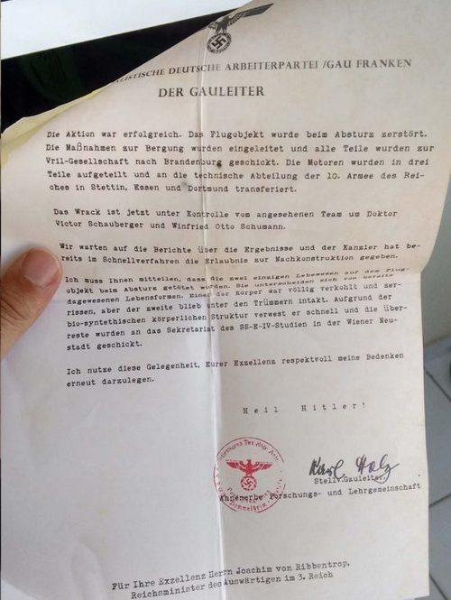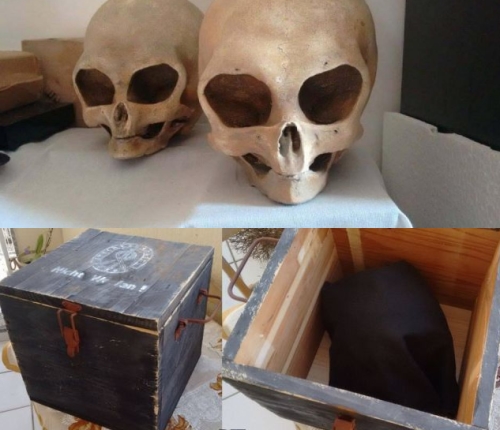 Orosz régészek az északi távoli hegyvidéki régiókban Kaukázus, amelyet a második világháború alatt fogtak el a nácik által találtak egy esetet az Ahnenerbe logóval és egy dobozt egy nagyon nagy dobozlal rejtélyes koponyák – akár embert érző ember, akár hibrid emberi és idegen.