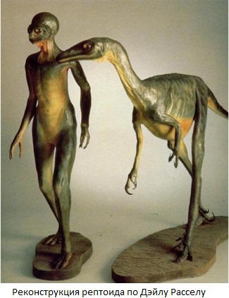 Dale Russell kanadai tudós úgy gondolja, hogy ez az evolúció folyamatában van A stenonychosaurus egy lépés lehet a humanoid megjelenése felé. Az ésszerű, hidegvérű lény, pikkelyes bőrű, hordozó és keltetőtojások. A faj képviselője tudta megtenni a 2007-ben, a 2007-ben talált híres “tengeri koponya” közé tartoznak Dániában. A tudósok ezt a versenyt reptoidnak hívják. Hová ment? gyík civilizáció? A Föld története során többször megtapasztalta szörnyű katasztrófák. Az úgynevezett A permi kihalás korábban eltűnt A bolygó minden hátránya és fauna 90% -a. Úgy tűnik, hogy ezek egyikében katasztrófák és a reptoidok civilizációja elpusztult. Ezért soha oldja meg az egyiptomi piramisok, Mexikó és Peru megalitjai rejtvényeit, mert az emberi logika alapján választ keresünk, de a gyíkok között a gondolkodás teljesen más volt, nem értjük.